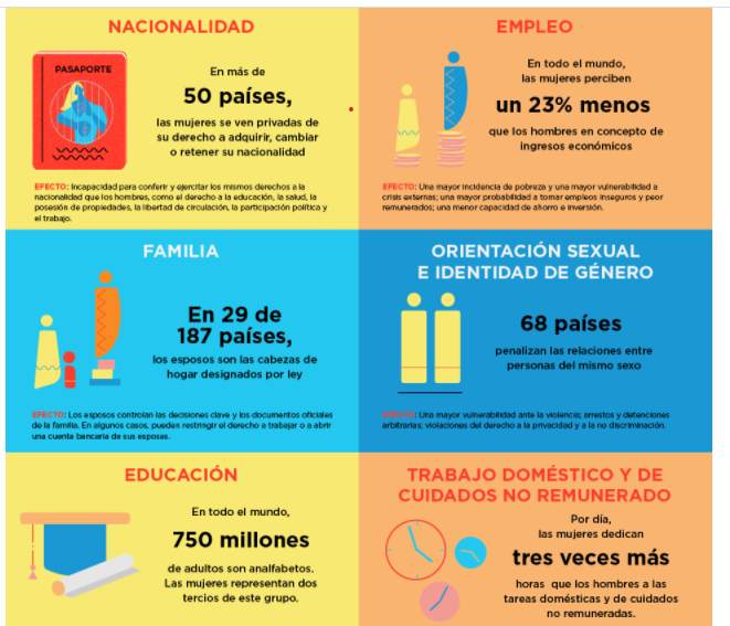 Si bien mujeres y hombres tienen los mismos derechos desde que nacen y durante toda la vida, ambos viven situaciones y condiciones diferentes. Las mujeres han vivido situaciones de subordinación y exclusión con relación a los hombres, lo que ha generado que no puedan ejercer sus derechos en igualdad de condiciones. Hablamos de Derechos Humanos de las Mujeres porque, aun cuando los derechos son aplicables a todas las personas, existen en la práctica diversos factores que discriminan a las mujeres del reconocimiento y goce de éstos.